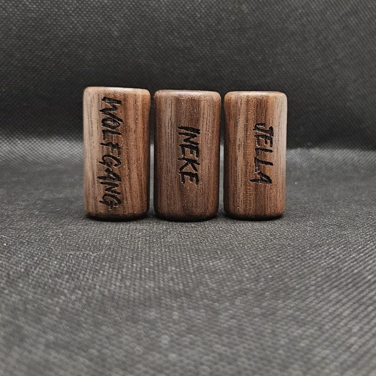 Hier lasere ich dir detailgetreu auf deinen Holz oder Kork Bobbin.